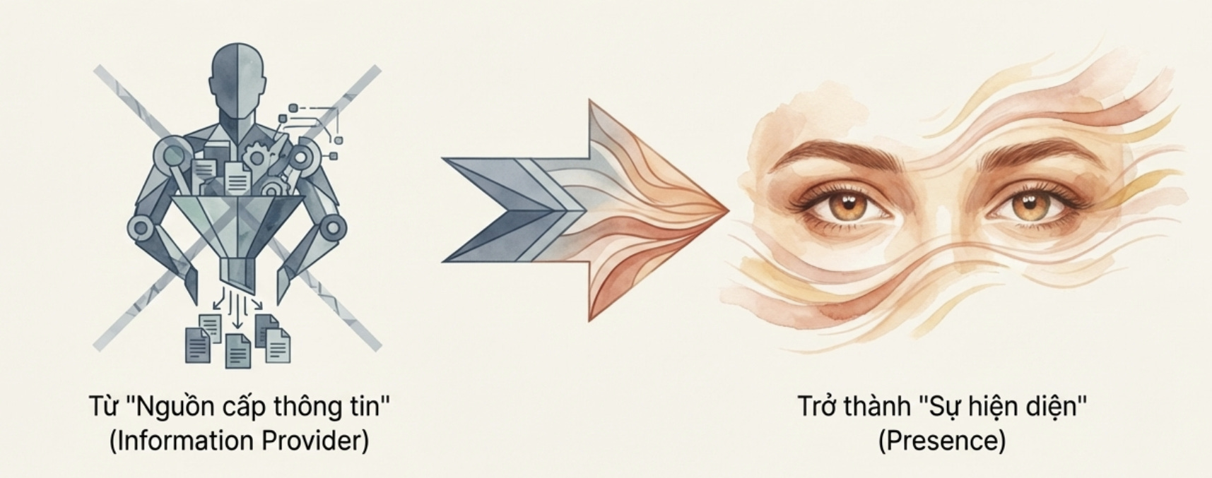 Và đây cũng là thông điệp rộng hơn cho mọi gia đình và trường học: Trong thời đại AI, khi máy móc đã có thể truyền đạt thông tin, giải thích khái niệm, thậm chí chấm điểm, thì thầy cô và cha mẹ được giải phóng khỏi chức năng “nguồn cấp thông tin” để chuyển sang chức năng không máy móc nào thay thế được: Chức năng hiện diện. Hãy hiện diện với sự chú tâm trọn vẹn, với lòng trắc ẩn thật sự. Hiện diện như một hệ thần kinh sống sẵn sàng cộng hưởng với đứa trẻ đang cần được nâng đỡ.
