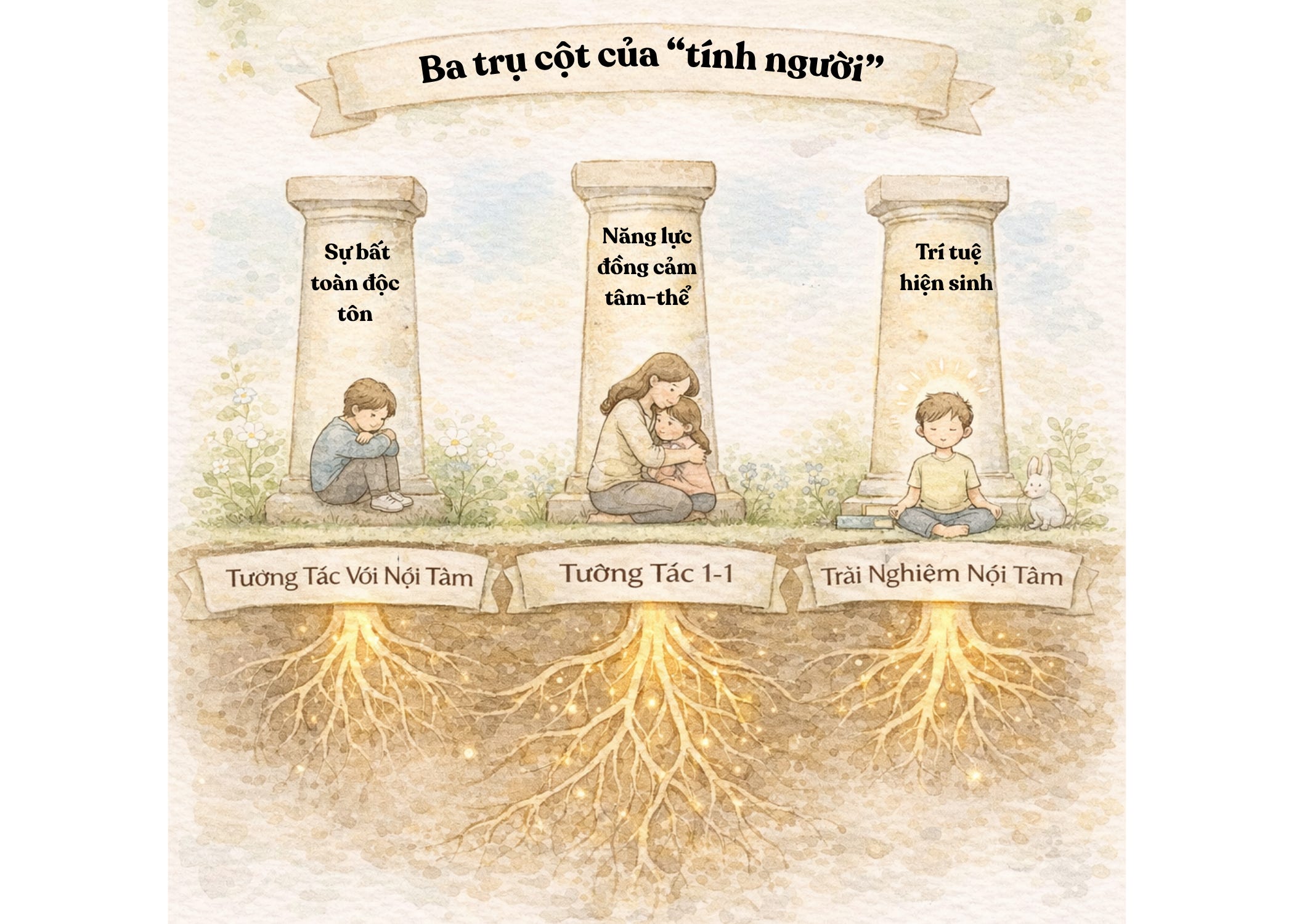 Tôi cho rằng “tính người” gồm ba trụ cột, mỗi trụ bắt rễ trong một trường tương tác bền vững.